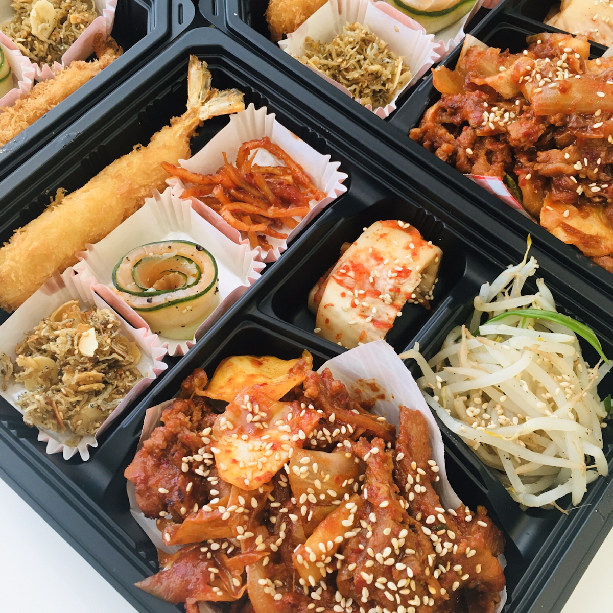 Amazing. Ordered spicy fish cake seaweed rolls, chilli mayo chicken and spicy stir fried pork bento.