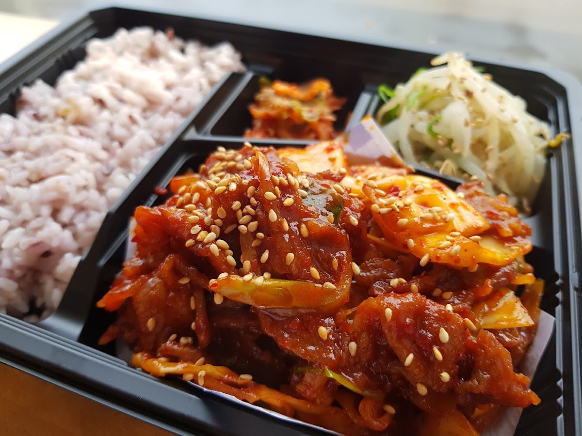 Very tiny take away place that i passed today with very polite staff. I had the Bibimbap to take out and it was delicious and i really enjoyed it. Very tasty mix of beef, rice and vegetables with a spicy sauce that came in a small platic container. I look forward to my next return to try more dishes. The only request i would make is not to include plastic cutlery, as they included which was not required. A simple question can help reduce waste.