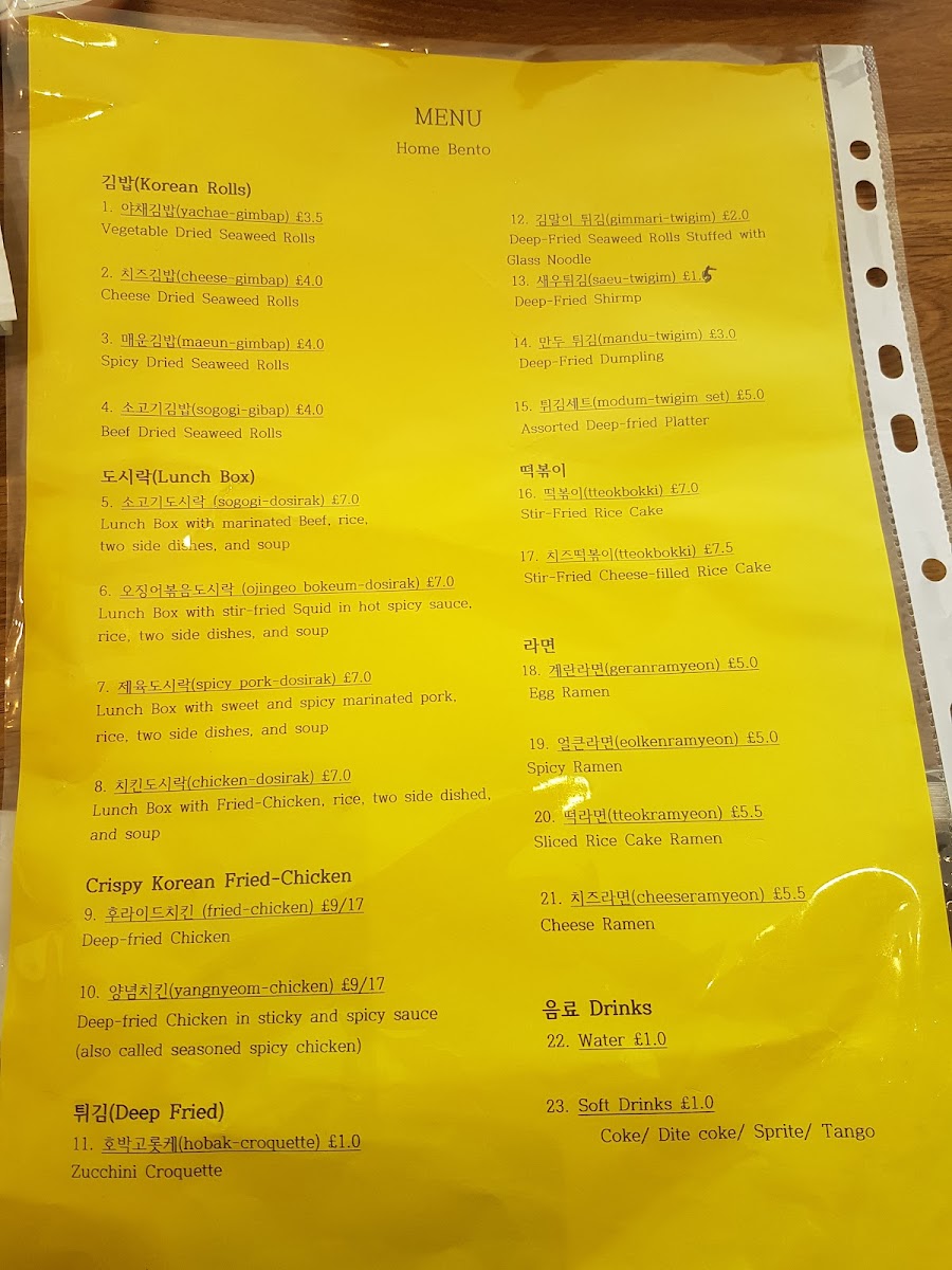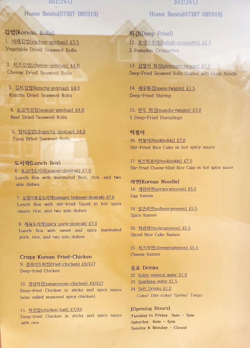 Home Bento offers a thoughtfully curated menu that balances traditional Korean flavours with approachable, comforting dishes. The menu features an inviting mix of casual bites and hearty meals, perfect for lunch or a relaxed dinner. Whether you're grabbing a quick take-out or settling in for a satisfying meal, the variety brings out familiar tastes and textures in every dish.
